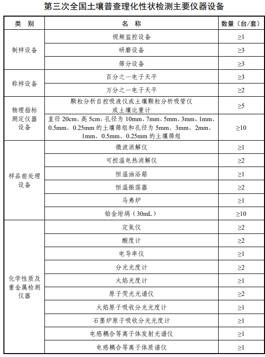 现将《预通知》内关于检测实验室、省级质量控制实验室和国家级质量控制实验室这3类实验室的职责、条件要求以及第三次全国土壤普查理化性状检测指标及主要仪器设备部分内容分享。