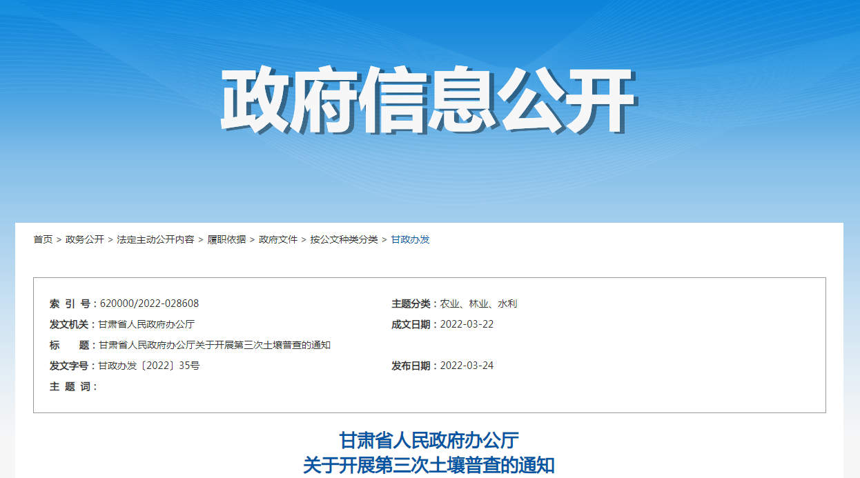 甘肃省人民政府办公厅关于开展第三次土壤普查的通知